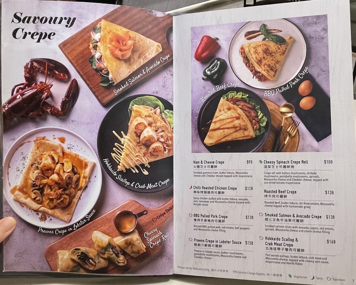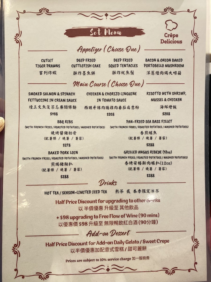 “ The Crêpe Delicious restaurant in Sheung Wan offers a wide variety of savory and sweet crêpes, along with other menu options like pizzas, salads, main courses, desserts, and drinks. The bright and spacious environment with indoor plants and soft music creates a relaxed atmosphere. The attentive service includes proactive water refills and utensil changes, enhancing the dining experience. Signature dishes like the Boston Lobster Linguine and the Hokkaido Scallop and Crab Meat Crêpe showcase rich flavors and generous fillings, while specialty drinks like the Lychee Peach Soda and Lemon Soda provide a refreshing accompaniment to the meal. ”